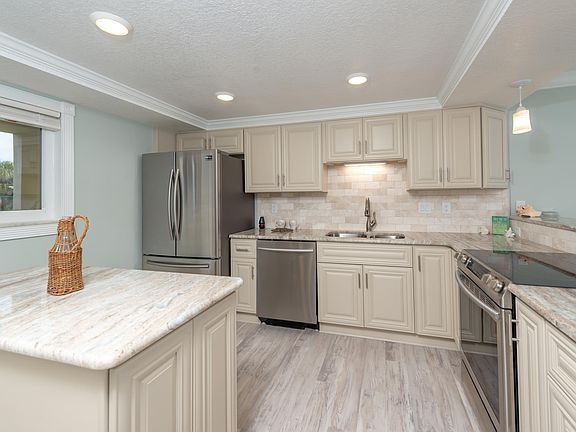 Here's your chance to own a first floor condo in the highly sought after oceanfront complex of Spanish Trace, complete with a peekaboo ocean view! This unit is perfect for someone looking for a unit that has been completed remodeled to the highest of standards and could make a great secondary vacation home and/or profitable investment property. The Seller spared no expensive with this unit, recent remodel work includes; vinyl plank flooring throughout main living areas, entirely new bathrooms, kitchen completely redesigned and remodeled, new windows and sliders, re-plumbed with PVC piping, drywall replaced, new lighting fixtures and fans, doors replaced, blinds/window treatments added, and new paint/trim through out. With only 60 units in the quaint community, Spanish Trace offers amazing