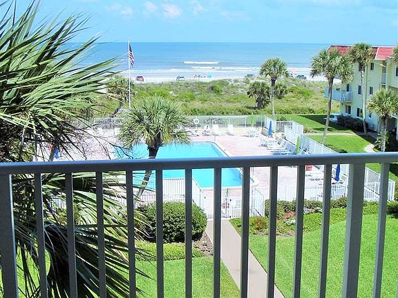 Beautiful, straight-on direct ocean view from your living room, master bedroom, or double-length covered balcony. This 2 bedroom/2 bath top-floor unit has it all (plus it's only steps from your elevator access). Large living/dining combo plus eating space in the kitchen as well. It comes with a washer/dryer, huge side-by-side refrigerator-freezer, and all other appliances. Ceramic tile flooring throughout, and bamboo flooring in both bedrooms. When it comes to location, Spanish Trace is IT! Close to a myriad of great restaurants, plenty of shopping, lots of activities, and best of all - right smack dab on the beach! Spanish Trace is a fully gated community, with 24-hour per day secured gate access. Make it your full-time residence, or use it as a vacation home and let it provide an income for you as a rental when you're away. It comes fully furnished and equipped, with only the exception of the seller's personal items and some personal artwork. PLEASE NOTE: The first two view pictures included in this listing are taken from inside the living room and inside the master bedroom, so you can see this is truly a direct ocean view unit! It's not very often that a top-floor, direct oceanview unit comes available here, so plan to see it soon!