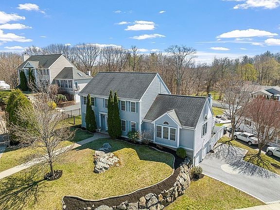 This is a lovely 3 bedroom (could be reverted to original 4 bedroom) 3 ½ bath colonial on a corner lot in a cul de sac. The foyer flows into a formal dining room with hardwood flooring. The kitchen was remodeled in 2010 featuring a breakfast peninsula that overlooks a sundrenched family room with gas fireplace and sliding doors to a deck with a Sunsetter awning. The laundry room with a half bath is located off the kitchen. A formal living room is connected with French doors to a sunny home office. Upstairs the main bedroom has a walk-in closet and full bath. Two additional bedrooms, a full bath and pull-down attic complete the second floor. Half of the lower level (exercise room) is currently being used as a storage area but is finished with a ¾ bath; the other half is finished as an entertainment room with wet bar and walk-out access to a paved patio and newer 2-tier fenced yard. A 2-car garage is upgraded with coated flooring, built-in cabinets and a concrete impressions driveway