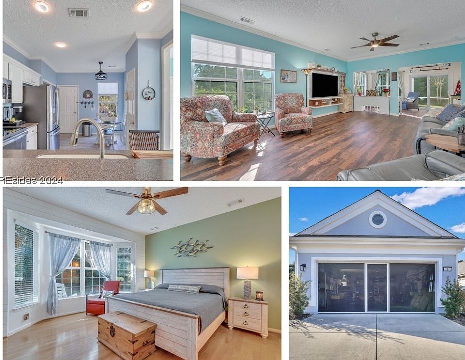 See this Updated Heather model on a newly landscaped private corner lot. New appliances, luxury vinyl flooring, shiplap, and new hot water heater. Separate list with all the updates. 75-inch TV comes with the house & stays on the living room wall. 2022 Yamaha gas golf cart for sale under separate bill of sale