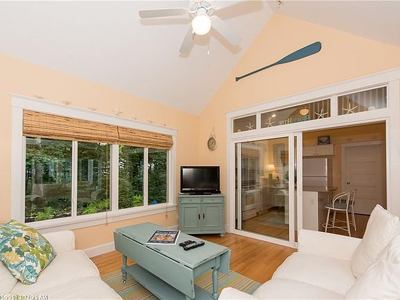 This is the the cottage you have been waiting for, so don't bother looking at anything else! The ever-popular "Port" style floor plan features an open concept kitchen and dining area, spacious living area, 2 bedrooms, 1.5 BATHS, and a LOFT. This cottage has every upgrade imaginable including CENTRAL AIR, hardwood floors throughout, white beadboard cabinetry, tile backsplash, granite countertops and more. Being sold FULLY FURNISHED right down to the 2 bikes outside. All of this situated at the end of a PEACEFUL AND PRIVATE DEAD END ROAD, nestled amongst mature tress and beautiful landscaping. Seaglass Village is the area's premiere 3-season cottage community offering 5-star amenities, a convenient location and a friendly atmosphere which is 2nd to none. Amenities include a gorgeous clubhouse (w/bar, fitness facility, function area, great room, etc.), in-ground heated pool, walking resistance pool, stationary lap pool, Jacuzzi, tennis, boccie ball, shuffle board, putting green and more!