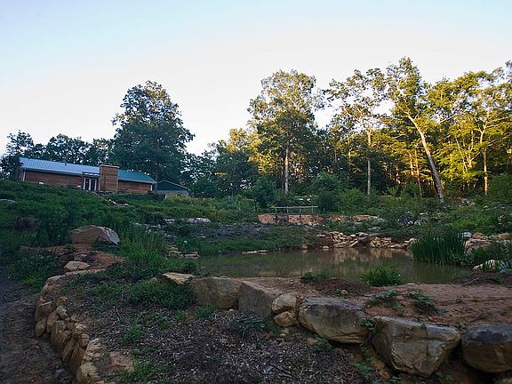 This is a surveyed 95.59 acre property that truly feels like hundreds more. The privately placed parcel sits deep into the Pisgah National Forest, surrounding it on three sides. You can hike from your front door along the Linville Gorge clear to Lake James and never leave public forest land. The water filters down the mountain feeding the two branches that run through the property. There is a very good well in place but the gravity fed spring water will spoil you. There is a twelve foot deep swimming pond surrounded by boulders, huge oaks and fruit trees. The 2,520 sq ft house is clean and functional. It features three bedrooms and two baths, has a large open kitchen/dwelling space, it also has a good sized entry/mudroom, pantry/laundry, and an office with a walk in closet. In addition there is a big timbered living room full of windows. There is a 1,275 sq ft detached garage/shop with roll up doors and additional covered equipment space off one end. Above the meadow sits a picnic area with a fire pit and covered pavilion on a concrete slab. The private drive can be accessed with lower sitting two wheel drive vehicles and large heavier trucks. The land itself is very beautiful and peaceful. It contains a variety of features including cove forest habitat, 75ft rock faces, a natural meadow where you can find arrowheads, lots of large oaks, pines, poplar, maple and more. There are around one hundred fruit and nut bearing plants and trees that are beginning to produce. The fenced garden is well established and quite a lovely place to dwell. The microbe and mycelium biome in the soil is intact and thriving, as there have been no pesticides or herbicides used on the property by the current owners. There are some areas currently open and plenty of gentle sloping forest that would be conducive for pasture or oak savannah. There is also a significant amount of value in harvestable timber as well as decorative rock and even gemstone potential on the property. Further development and maintenance of the current trails could produce world class mountain biking and running loops that rival most state parks. It becomes apparent to everyone who spends time here that this place is a special one. If you have been looking for a place of sustainability and security to preserve your legacy than you know that this is a rare find.