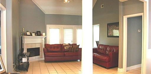 Well treed, lagoon/golf view,corner lot. Open design concept floorplan. Main living areas and baths feature ceramic tile flooring. Corner fireplace/gas logs in living room which has a volume ceiling. Formal dining room has a fabulous octagonal ceiling and lots of natural light.