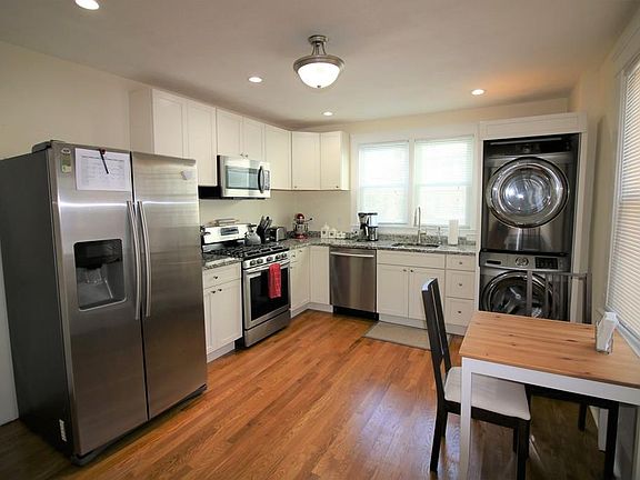 Fully updated, bright, and beautiful two-bedroom apartment available August 1! This previously owner-occupied unit was fully remodeled just two years ago with quality in mind. The gleaming kitchen has granite countertops, stainless steel appliances, gas cooking, nest thermostat, central cooling, and a washer and dryer in unit. The spacious living room and two bedrooms have hardwood floors, tall ceilings, and ample closets with customized shelving. The full bathroom features a modern vanity and sleek tile. With three parking spaces included, this great home is convenient to Soldiers Field Road, the Mass Pike, and bus routes to downtown. Be sure to view the virtual tour of this fantastic first-floor apartment!