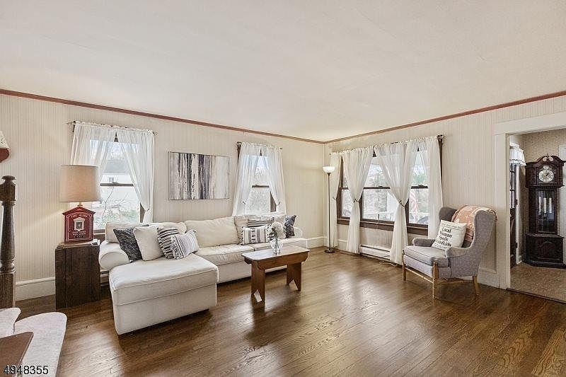 Best value in Mendham Boro! Assessed at $563,800. This fantastic 2,900 sq ft home on 0.35 acres w/ ALL public utilities is deceiving from the outside. Adorable porch welcomes you to the living rm complete w/ newly refinished hardwood floors & wood burning FP. The formal dining room is spacious & leads to oversized eat-in kitchen with rustic wood cabinets. The huge 22x21 family room is the heart of this home. Perfect for large gatherings or a cozy night in w/ wood burning stove & built-ins. The family room overlooks a lovely 0.3 acre yard w/ brick patio & flat lawn. Want a pool? You have the space! 1st floor also has a den/office, powder rm & side entry foyer. Upstairs are 5 BEDROOMS & 2 full baths (possibilities for master suite). The stairs, hallway & most bedrooms have hardwood fl under carpet! Other features include 11 yr young roof, 2 yr old hot water heater, waterproofed basement w/ transferable warranty, exclusive 2 car width driveway has 2 car garage, workshop & is close to everything! Downtown Main St around the corner, elementary school, Village shopping center 0.7 miles, elementary 0.3 miles, middle school 0.3 miles down the street, Brookside Beach/ Swimming 2.5 miles, Morristown train station 15 min, Downtown Chester 6.3 miles, Newark airport 40 min, Manhattan 55 min, Top rated schools, fine dining, playgrounds & more.