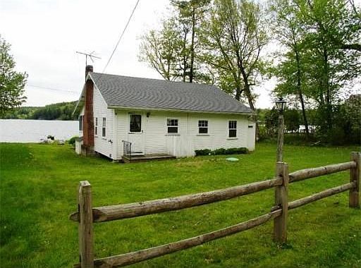 Relax on spring fed 151 acre Sunset Lake (a.k.a Wash Pond). Charming seasonal rustic waterfront cottage on double lot on dead end street w/ 100' of lake frontage for summer swimming, fishing and boating. Private docks for your boat(s)! Large flat lot; wonderful front, side and back yards. Wood fireplaced living room opens to sun rm w/ panoramic lake views, enjoy stunning sunrises w/ a cup of coffee. Curl up in front of the fireplace in the evening! Needs cosmetic updating.