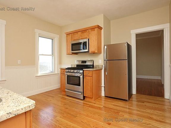 ooking for a renovated 4 bedroom with laundry that is T accessible? Look no further! New renovations include a granite kitchen with stainless steel appliances and custom cabinets, new bathroom with marble vanity, refinished Hardwood floors, new light fixtures, private deck, and freshly painted! This house is one of the nicest in the neighborhood and is literally a 2 minute walk to the Suffolk Downs Blue Line T. Once on the train it's about a 15 minute ride to downtown Boston. Did I mention in-suite laundry and your own private deck with distant water views? This is a very large 4 bedroom apartment. Just about 1500 square feet. This is also the corner building on the street and gets amazing sunlight! This is located on one of East Boston's nicest streets! Available for 9/1/17 move in.