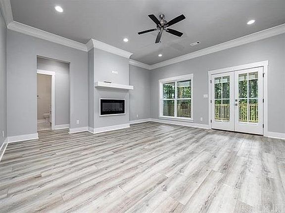 A great home in beautiful Hot Springs Village. This 2313 square foot all brick home features vaulted beamed ceiling, crown molding, LVP flooring, quartz counters, custom cabinetry delightfully spacious pantry and spacious deck overlooking private back Split bedroom floor plan. Two large bedrooms separate from primary and flex room off foyer. The spacious master boasts a large walk-in closet that opens to the laundry, separate, vanities, soaking tub and large tile shower. Great room has electric fireplace and is open to dining and kitchen. Perfect for entertaining. Large island in kitchen, soft close drawers and custom vent hood. This home is located in the beautiful Granada golf course area. Hot Springs Village has 11 lakes, 9 golf courses, tennis, pickle ball, indoor and outdoor pools, playgrounds, hiking trails, dog parks, two marinas and so much more. Taxes are on vacant lot. Interior photos are of a similar home that is complete. This 4 bedroom 2 1/2 bath home will be complete late September. First time buyers have one time $1500 buy in fee to POA in this spectacular community.