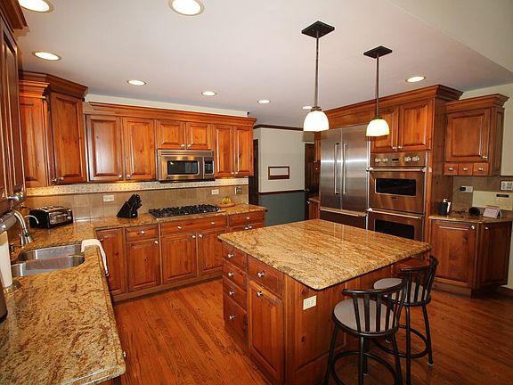 Couples can work from home in this warm and inviting 2 story home situated on a beautiful 1.4 acre corner lot. This home has so much to offer and has also been very well maintained. It's the perfect home for entertaining with a very spacious open floor plan. Gorgeous remodeled kitchen with granite counters, pine cabinets with decorative glass and drawers, stainless steel appliances and recessed under cabinet lighting. Center island with breakfast bar and separate eating area with sliding glass doors leading to a huge deck. Family room with vaulted ceilings and a stone floor to ceiling dual sided fireplace that joins with the dining room/living room. Hardwood flooring throughout the main level. Huge office on the main floor which is perfect for working from home - it has vaulted ceilings with skylights and direct access to the backyard. Could also be used as a game room or bar area. 5th bedroom and full bathroom located on the main floor. 2 foyers and a large front porch. Laundry room with counters for folding, storage cabinets and a utility wash sink. Master bedroom with triple glass sliding doors leading to great sized balcony overlooking the huge private backyard. Enjoy your morning coffee up there or just relax while taking in the beautiful scenery. Walk in closet, dressing area and master bathroom with 2 vanities. 3 additional great sized bedrooms upstairs. Main bathroom can be accessed from the hallway and through bedroom 2. Newer neutral colored carpeting throughout the upstairs (installed in 2019) and neutral paint colors throughout the entire house. Finished basement with rec room, theater seating and crawl space with plenty of extra storage. Great sized lot with professional landscaping, deck, play set, shed and a hot tub as well. 6 car garage (two separate 3 car garages, one of them is heated and tandem (27 feet) which adds an additional 3 parking spaces totally 9 spaces...WOW!) Perfect for someone who loves cars or can easily be converted into additional living space or another home office with a private entrance. Newer roof and gutters in 2018. Entire exterior of house was repainted in 2016. Brand new hot water heater. Water treatment system with reverse osmosis. Close to I-90, restaurants, shopping at The Arboretum and much more. Award winning Barrington schools. This home has over 3,500 square feet, an amazing sized private lot and is located in a perfect, quiet and beautiful subdivision with NO MONTHLY ASSESSMENT FEES! Check out the E-Brochure located under additional information for more details about this beautiful home. Don't miss out on this one, it is truly a must see!