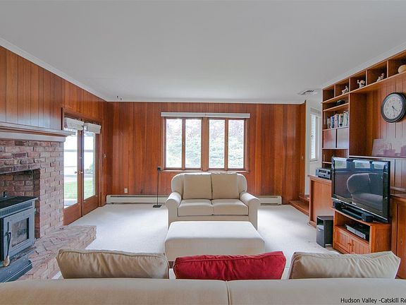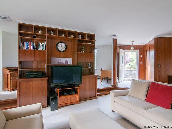 Attention Mid-Century Modern lovers!! This home is located in one of the most desirable areas of Uptown Kingston, situated on a corner lot of well-maintained homes. This home features over 2,152 square feet of living space, 2 bedrooms, 2 baths, and a Mid Century Modern teak built-in shelving within the sunken living room. This home is perfect for entertaining. French doors lead to the screened-in bluestone terrace surrounded by a beautiful well-groomed yard and BBQ area. The eat-in kitchen has breakfast bar and accommodates comfortable entertaining by use of the serving window to the terrace. The two bedrooms are on opposite ends of the house providing extra privacy. Constructed of brick, this elegant home is low maintenance and has central air. The property is well landscaped and the backyard provides a sense of privacy and seclusion with use of privacy fence and mature ornamental shrubs and trees. Lastly, there is an attached two-car garage with stairs leading to the main level, a great feature for the winter months. Walk to the historic Stockade District and Uptown restaurants; convenient to shopping, schools and hospitals.