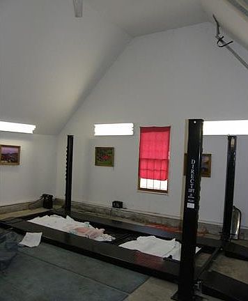 This handsome Cape has an inviting front porch and is nestled on a level lot in a pleasant neighborhood close to commuter routes. The first floor features a living room with cathedral ceiling, fireplace, and doors that open to the spacious deck with awning; a sunroom; and a master bedroom suite with walk-in closet, sitting room or office, and full bath with whirlpool tub. The dormered second floor has two more bedrooms and a full bath. Enjoy added space in the 12x50' lower level family room. One detached two car garage has dual platform lifts, while the other has an asymmetrical lift and loft above.