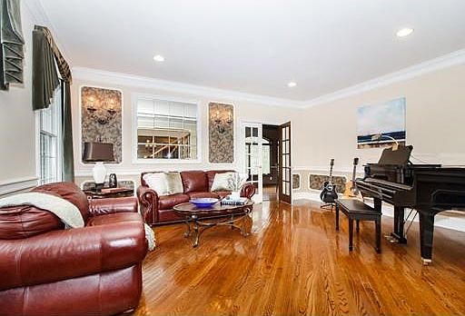 - Liv Dscrp: Flooring - Hardwood, French Doors, Recessed Lighting, Wainscoting, Chair Rail, Lighting - Sconce