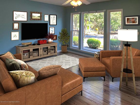 NEW YEAR...NEW PRICE. Bright and Sunny expanded Ranch home in Flair Development. A touch of Seaside finishes in the large kitchen with crisp blue and white touches. Separate eating area with double doors leading to yard with in-ground pool and concrete patio. Gleaming hardwood floors throughout. Sunken formal dining room with side door access. Expansive Living Room with oversized windows, 3 Bedrooms and 1 full bath. Fenced yard, 2 sheds, attic storage, lawn irrigation, alarm. This corner property sits on half acre and ready for new owners. New pool cover being installed.