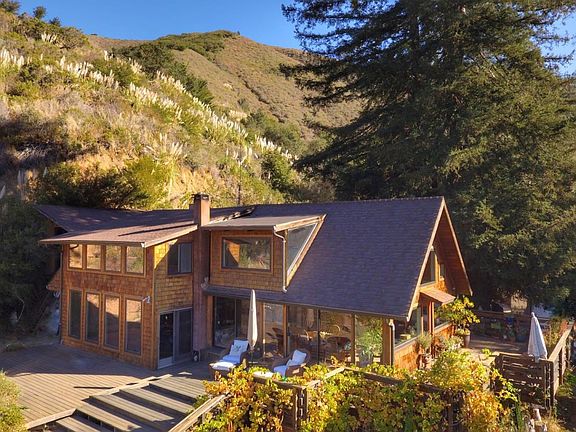 Turn-Key Big Sur Living conveniently located within 20 minutes of Carmel! Shelter in place at this beautiful property is located just one mile inland, this property features TWO updated 3 bedroom, 2 bath homes. Choose from a cozy 1200 sq. ft. cabin tucked into the redwoods with the soothing creek below and private fenced hot tub under the redwoods or use as an income property in the desirable Carmel School District, or a 2600 sq. ft. south-facing updated hillside home with tons of natural light, sun, a 2000 square foot deck, a touch of modern with concrete floors with radiant heating, floor to ceiling windows with canyon views, and stylish custom kitchen with updated appliances and loads of flat, terraced garden areas. Panoramic views of redwoods, this property is the ultimate escape from everyday life. The iconic Rocky Point restaurant is about 2 miles away and the spectacular Garrapata Beach just 3 miles away.