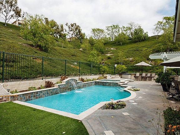 Located at the end of a cul-de-sac street w/ an Eastern back yard exposure, w/ 4 bedrooms & 4.5 baths. The master suite has built-in storage & bookshelves, his/hers vanities, walk-in closet, walk-in shower & jet-spa tub. 1 main-floor bedroom w/ private bathroom & 2 secondary bedrooms up, each w/ private baths that share a common study area w/ built-in desk & storage cabinets, along w/ a bonus loft area. The front entry has a terraced flagstone & pebble hardscape walkway w/ fountain that opens to a center hall leading from the formal living room w/ wood floors & fireplace, through to the formal dining room, family room & kitchen. The main floor office could also serve as a bonus room. The family room is open to the kitchen & features window shutters, fireplace, entertainment niche & built-in sound. The kitchen has a full range of appliances, granite counters & backsplash, large ctr-island w/ bfast bar, nook, walk-in pantry & service center. The private back yard has a salt water pool & spa w/ water feature, trellis covered patio, fire pit, built-in BBQ Island, outdoor sound, well-appointed landscape & over-sized side yard. A finished 2-car tandem garage & over-sized driveway provide storage space, a work bench & ample parking for guests & family.