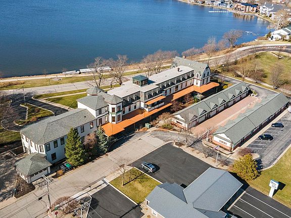 The historic Winona Hotel condominiums feature an incredible 300+ sq ft of lake frontage with unparalleled views of Winona Lake. Where sunrise and sunsets can be admired from both the lakefront and indoors at condo 302. Admirable for its historic allure, showcasing many original elements including the elegantly crafted woodwork and stunning architectural detail throughout all common areas. As you enter the main entryway of the hotel, you'll be welcomed with warmth, charm and character. A meticulously restored foyer with hardwood floors, natural lighting, fireplace seating and direct views of the lake make this the perfect focal point entrance. The grand staircase leads you to the third floor where unit 302 is located. Also accessible through the common elevator for convenience. Nestled away down the corridor and past the library, is the Heights condo. A 1,200 sq ft home featuring an open concept floor plan, two bedrooms, two full baths and a two-car garage with attic storage and designated pier slip. Step inside the transformed space strategically designed to showcase a lake view from the living and dining areas as well as both bedrooms. At the heart of the unit, a generous 18x16 living room with adjacent dining space and kitchen, makes this the ideal place to spend your days when not outdoors. Beautiful handscraped style LVP floors, solid doors, custom cabinetry and private laundry room are just a few of the many modern upgrades showcased here. Tall ceilings in bedrooms with light and airy color palettes that create a tranquil vibe, plus just a touch of flare with the perfect blue shade of bath cabinets. Life at the lake is so much more than enjoying the all sport lake, it's time at the Village of Winona. Boutique and specialty shoppes, casual and fine dining, and numerous community festivals plus the incredible Fourth of July fireworks show over the water create a fun and vibrant culture unique to the area. Come on over and see all that the Winona Lake life has to offer.