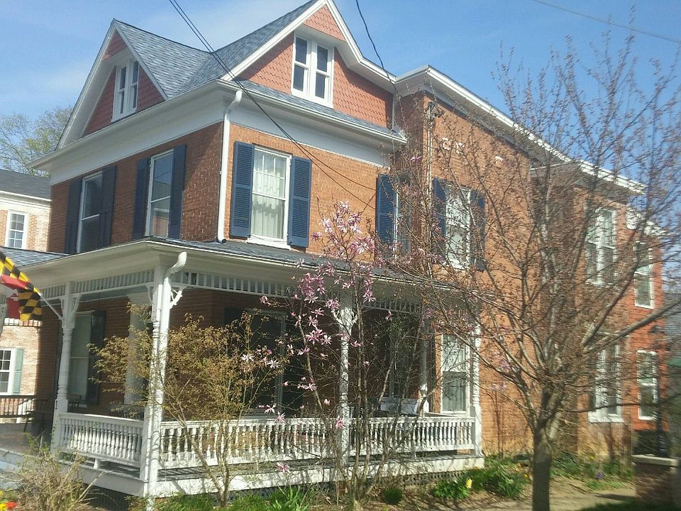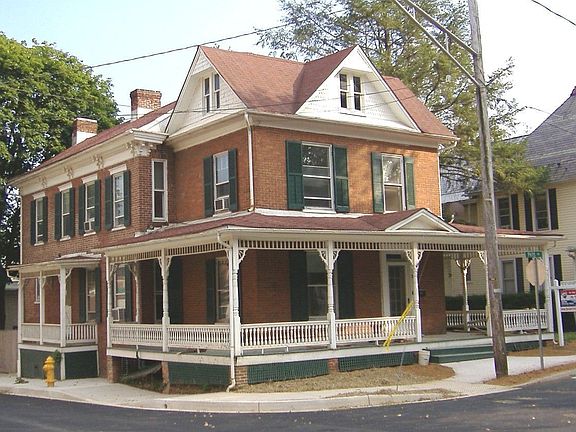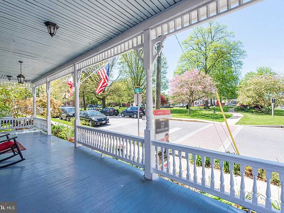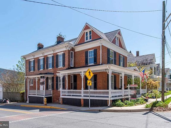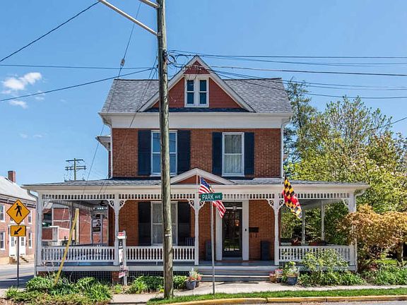 5 bedrooms ; 4 full baths ; 1 half bath ; 4-car detached garage. Nestled on corner homesite is this delightful circa 1900 brick colonial offering many upgrades while maintaining the integrity and historic appeal. A wrap-around porch welcomes you inside this home featuring smart wiring, radiant hardwoods, elegant detail, profile crown moldings and trim, a clawfoot tub, a foyer entry, a formal living room with timeless built-ins surrounding a fireplace, a gorgeous formal dining room displaying 2 corner china hutches, a butler~s pantry, and a home office with an exposed brick wall. Upgrades give this gourmet kitchen a commanding presence displaying a apron sink, granite counters, harmonizing tile backsplash, 42~ custom wood cabinetry, a center island with breakfast bar, a pot filler top-of-the-line stainless steel appliances including a Sub Zero refrigerator freezer and a Viking gas range, and a walkout to the courtyard. Owner~s suite presents sunny natural light and a luxe bath showing dual sinks, a jetted soaking tub, and a fully tiled shower with dual shower heads. Exterior amenities incorporate a back courtyard with privacy fence, an outdoor fountain and lighting, and a garage with a workshop. Just across from the Belle Grove Square Park, listed on the National Register of Historic Places in Westminster, close to restaurants, shops, and McDaniel College
