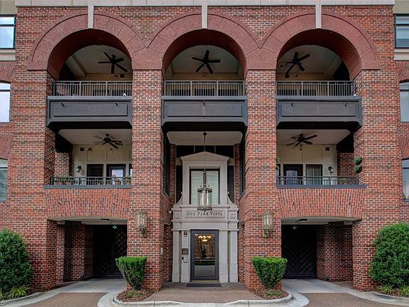 Downtown Winston's most elegant address -- One Park Vista -- across from Merschel Park (under construction); Secure lobby w/elevator; Open/airy floor plan w/10' ceilings; Wood & tile floors throughout (no carpet); Granite kitchen w/Bosch stainless steel appliances; DR leads to LR w/gas FP & city skyline views; Private 160-sq-ft covered terrace accesses LR & MBR; Luxurious master BA w/granite, walk-in closet & tile shower; Add'l 2nd BR & BA; Assigned parking space & storage area included within building.