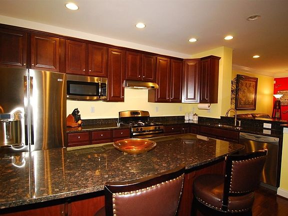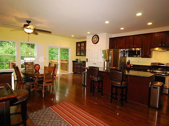Spectacular 3yr young END Unit in best location! Lovely private setting! Inviting Open floor plan& layout.Shows incredibly.Gorgeous Kit- 8 ft island breakfast bar,granite counters,SS appliances w/gas range, under-mount sink, custom cabinetry w/moldings & optional hutch.Gorgeous wood floors main level. Windows accented w/plantation shutters. Wonderful space w/ lovely views out to inviting private deck & parklike surroundings. On the ground level Great room(19X19) has gas fireplace& sliders to private patio & treed setting. Recessed lighting & ceiling fans. 2nd flr laundry rm! Must see appealing mastersuite, tray ceiling w/luxurious bath.Bose surround sound system.Easy commuter access to major routes, shopping, parks & lakes. BONUS- 2% closing costs included to buyer. Plumbed for additional bath-see flr plan.