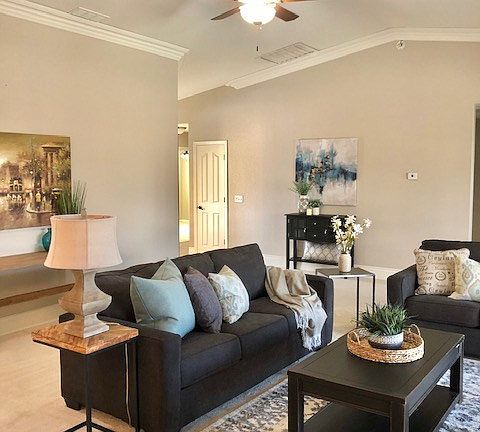 - Granite Counters, Open Floorplan, Ceiling Fan(s), Crown Molding, High Ceilings, Storage