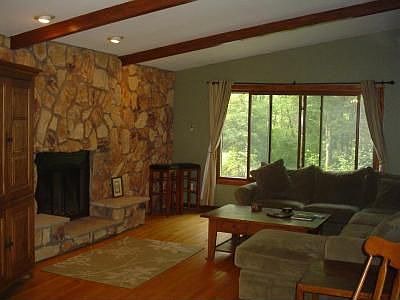 SOLD Custom ranch on 5 + park-like acres at end of a cul-de-sac. Large LR/DR with wood burning FP. Master BR with his/hers closets & updated master bath. Hardwood floors thru most of house. New roof and gutters in 2008, hot water heater in 2009, newer A/C, washer/dryer & dishwasher. Most windows replaced.