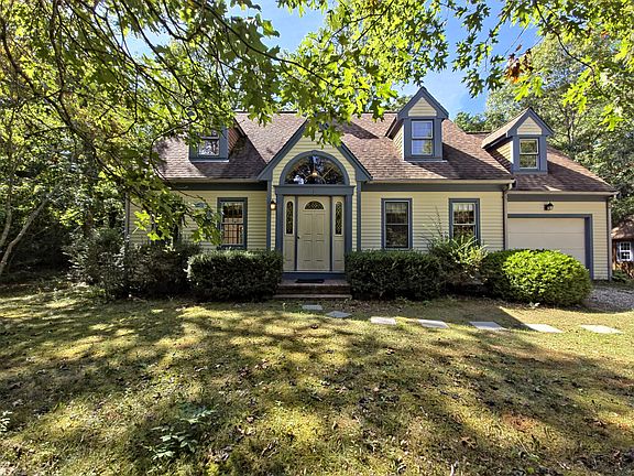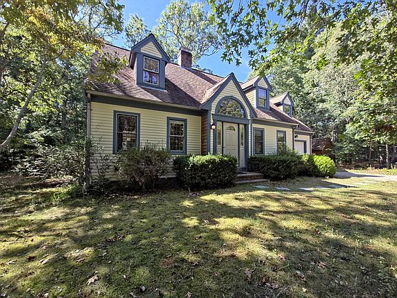 Set on a quiet cul-de-sac in Triangle Pond Estates, this spacious Cape offers hardwood floors, cathedral ceilings, and a flexible layout. The entry opens to a large living room with a floor-to-ceiling wood-burning fireplace. A dining area flows into the kitchen; a full bath and generous first-floor bonus room complete this level. Upstairs, the primary suite has a walk-in closet and half bath, plus two additional bedrooms, a sunlit loft overlooking the living room, and another full bath. Outside, the mature plantings add privacy with the house sitting at the end of a long gravel driveway. Within about a mile of Triangle Pond's public access/launch on the west shore--great for swimming, paddling, fishing, and low-horsepower boating--yet minutes to shopping, dining, and Route 6. With some updates and landscaping to match the new owner's preferences, this house is a wonderful opportunity.