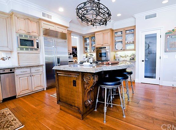This impeccable property can be leased unfurnished for $5,500/mo or furnished for $5,800mo. Located in the 24hr-guard-gated community of Ocean Ranch, this elegant home rests at the end of a cul-de-sac on a pool size lot with mature landscaping, an alfresco dining area and BBQ bar. Extensively remodeled, the home features four spacious bedrooms, one bedroom and bath located on the main floor, a computer station and upstairs bonus room. Boasting numerous upgrades, the interior is showcased by a combination of stone and wood flooring, a wrought-iron staircase, architectural mill work, designer window coverings,carpeting and built-in entertainment center. A well-equipped kitchen open to the breakfast room and family room, provides a sit-down center island, stainless steel appliances, granite counter tops, ample storage with a walk-in pantry. Double doors open to a naturally lit master suite with a cozy retreat and fireplace. His and her custom vanities, stone finished shower, free-standing claw-foot tub and walk-in closets showcase this very elegant master suite. Two guest suites and bonus room also compliment the upstairs. See floorplan in supplement section