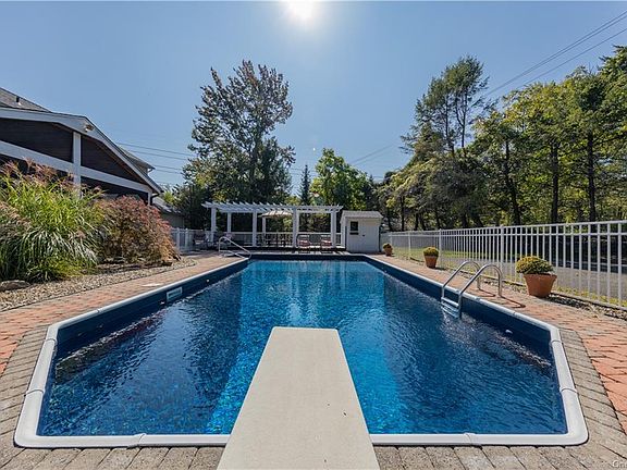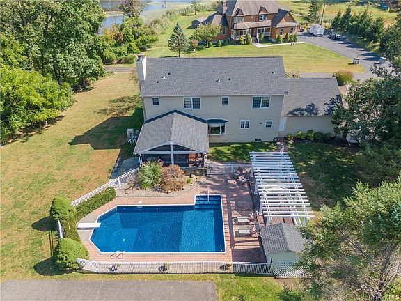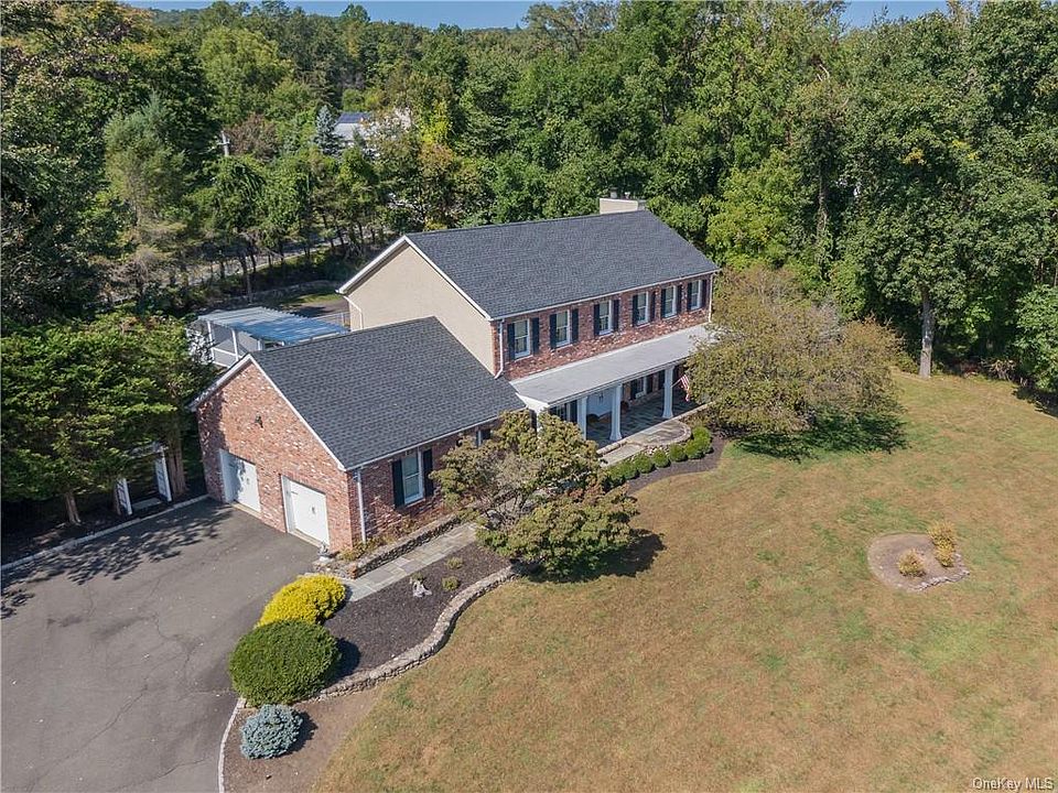 Stately elegance describes this exquisite colonial with a mid-century modern flare. This home offers so much privacy in the Hudson Valley. Overlook a pond while sitting on your front porch with natural bluestone, double front door entry, or relax on your back porch,cathedral ceiling overlooking your in-ground salt water pool, with a pergola. Property offers a pavilion with masonry fireplace, electric with a chandelier and tv. The perfect little escape and you never even have to leave your property. Custom designed kitchen cabinetry, coffered ceiling, Viking stove & vent hood, Miele dishwasher,granite counter-tops. Custom woodwork and crown moldings. Family room has a fireplace,& double french doors. 4 bedrooms 2 full baths & 2 half baths. Fabulous 3 plus acres, professionally landscaped with irrigation system. Just minutes from Bear Mountain and Harriman State Parks. Less than 40 miles from NYC. A wonderful home to entertain or sit back and just relax with all this home has to offer.