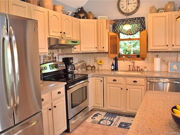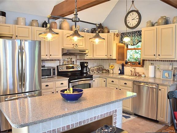 Charming, pristine and efficient describe this 2 bedroom, 2 bath Ranch style home in the Pleasure Beach area. Set on a corner lot, features include an open floor plan, cathedral ceilings with wood beams and skylights combining a transitional coastal feel with a cottage like warmth. The kitchen and living room share the open space and is perfect for casual family living or easy entertaining. The kitchen features silestone countertops, a center island, and stainless steel appliances. The living room includes a propane stove, hardwood floors and French doors leading out to the patio and level lot. One of the bedrooms on the main level is being used as a dining room; the master bedroom is down the hall. A full bath completes the first floor. Custom plantation shutters dress most of the windows on the main level. The lower level is partially finished and includes 2 additional rooms (potential bedrooms) and a full bath with washer and dryer. Unfinished space is perfect for storage. Energy features includes assumable Solar Panels ($149.00 monthly; Eversource average is $9.00 a month), 2 Mitsubishi split wall units providing heating and cooling and the propane stove. A paver driveway and outdoor shower complete this fine home. Membership to Pleasure Beach is optional and deed includes access to the beach for bathing purposes.