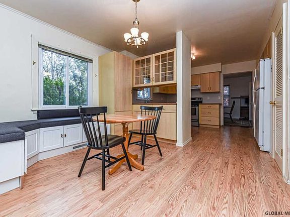 **NEW PRICE** RARE gem in a wonderful Loudonville neighborhood near The Crossings. This 4 bed/2.5 bath colonial has great bones & a superb layout that is just ready for your unique touch! Whip up yummy treats in the light & bright kitchen remodeled a few years back with corian counters, coffee station & pantry. Enjoy light bites on the stylish banquette built into the breakfast nook that opens onto both the kitchen & family room. Light a fire & snuggle up in the the family room with slider to the backyard. Entertain in the formal dining room. Stylish updated half bath. Owners' bedroom features large closet & private bathroom. Hardwood floors throughout. Huge side yard is perfect for outdoor play. LOW taxes & South Colonie Schools.