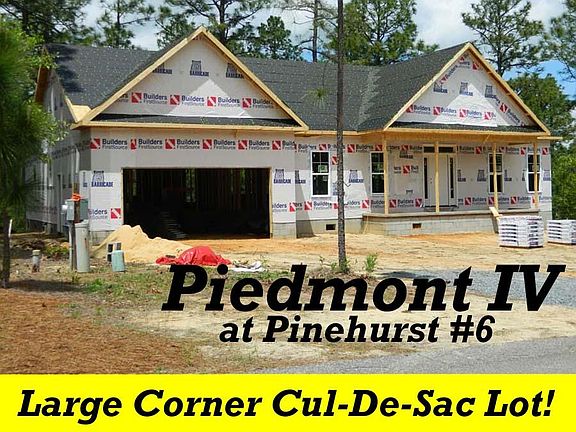 ''PIEDMONT IV'' is coming to Pinehurst #6. This 4Br 3Bath home will be a split Br plan with a rear 4th Br/Suite with private bath and direct entry onto the rear screen porch! Covered Front Porch. Foyer opens to Great room -- overlooking the 36X10'' Screen Porch. Fireplace. 9'Ceilings throughout home. Dining Rm with built in Buffet & china closets. Oversized Master Suite, with dual closets & separate garden tub & 5' shower. Open Kitchen and Breakfast Nook will be an integral part of family living! Walk-in pantry. Double car garage connects to oversized laundry and easy access to kitchen. NOW TRIMMING with late SEPTEMBER OCCUPANCY possible! Call today!