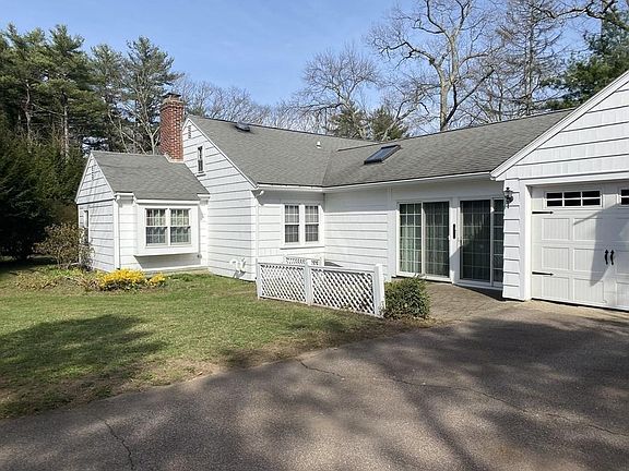Striking Ranch/Cape with many updates. Professional landscaped and substantial yard on all sides with fenced in rear. Great curb appeal! 3 car attached garage. Open Interior layout highligted by dramatic cathedral ceiling gourmet kitchen with skylights, quartz counters, ss appliances, wine cooler and island with seating. Sunroom/Office w/ French doors. Hardwood floors throughout. Cozy 3 Season porch with quadruple sliders. Fireplaced LR. Master with full bath. Skylight in main bath. Insulated replacement windows, Central Air, newer furnace by natural gas, 200 amp electrical service. Walk up attic for possible dramatic expansion. Wonderful finished basement (approximate estimate(300 SF.) Just a lovely property in highly desirable East Walpole neighborhood. 100 acre Bird Park around the corner. Close access to major highways. Blue Ribbon awarded elementary Old Post School District is a bonus! New middle school coming to East Walpole! appliances included Storage Abounds.