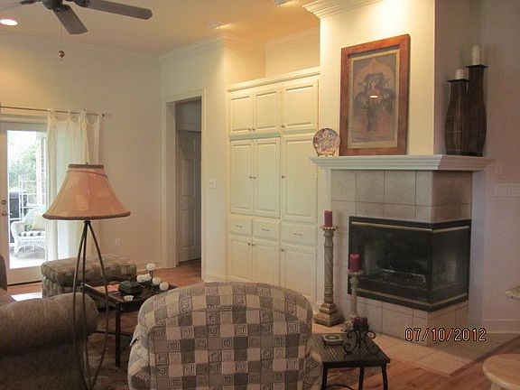 Located in Hammond, La., this "Must See" garden home is surrounded by lots of green space and pond on lovely corner lot. Lot appears larger than it actually is. Custom built-exposed brick encases oven and microwave in kitchen with gas cook-top, custom maple cabinetry, new granite counter tops, over and under cabinet lighting, triple crown molding throughout, plantation shutters in living, dining and master bath, corner gas fireplace, large master suite with jacuzzi, and cozy side-screened porch overlooking pond with fountain. New wood and ceramic floors in living, kitchen, and baths. Jack and Jill bath between 2nd and 3rd bedroom. Exterior gas lanterns next to front door and garage. Security system.