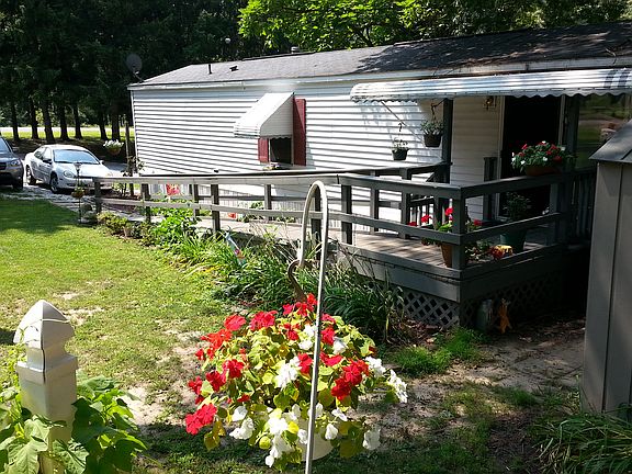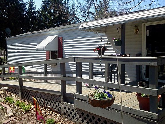 This home has hard wood floors throughout the kitchen,master bedroom and living room. the kitchen is very spacious and has loads of cabinets and counter space. the second bedroom has brand new carpet. the home has all fresh paint. there is a large deck for summer cookouts. there is also a handicap ramp. this home sets on a corner lot in park,. there are also two storage sheds. this is a must see! the park is also pet friendly no size requirement.The lot rent is $515.00 month no other hidden fees.