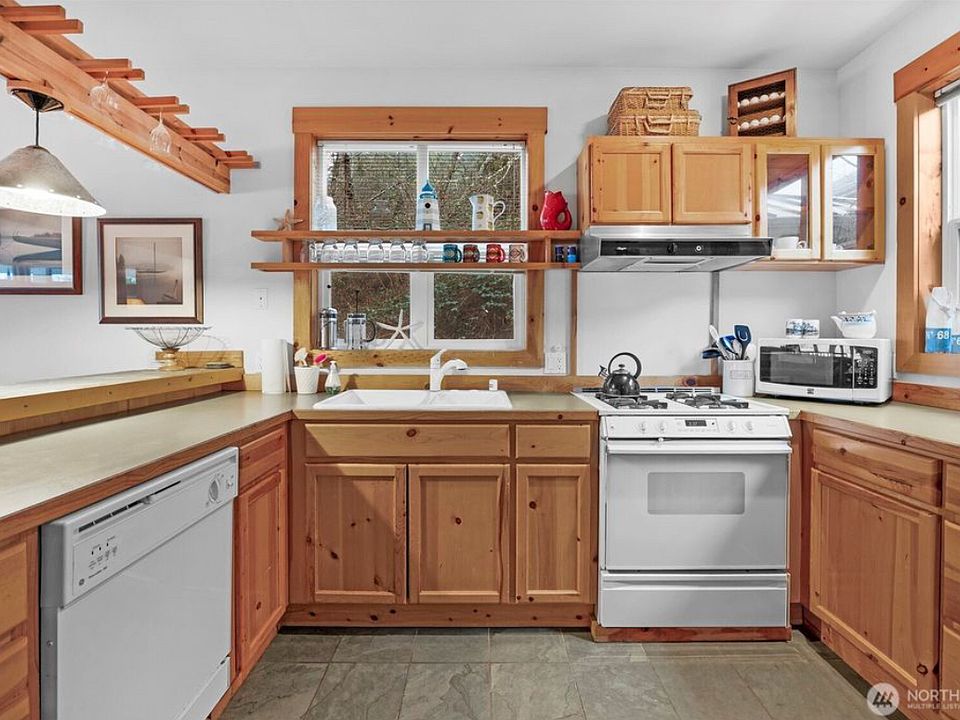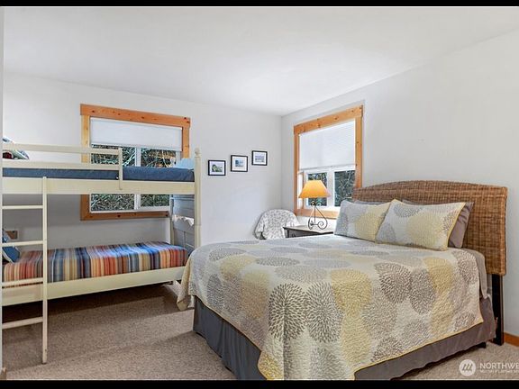 Waterfront living in the Port Ludlow Marina. Three en suite bedrooms. Fully furnished former Airbnb ( or can be rented empty). Detached garage. Private deck and patio. 3rd bedroom is above the garage.