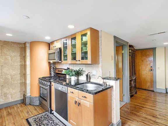 An Extraordinary Opportunity To Acquire A Piece of the 1861-Built and Formally St Michael the Archangel Church Which Has Been Carefully Renovated and Consisting Of The Original Terrazzo, Hardwood, Stained Glass And Stone. Enter Unit C9, Former Model, To Find A Truly Spectacular & Architecturally Unique Living Space With Soaring Ceilings, Roman Columns And Infused With Natural Light. *Kitchen With Granite Countertops, Stainless Appliances, Osmotic Water Filter, & Modern Tinted Glass Door Cabs. *Tranquil Roomy Primary Suite w Stained Glass, Faux Painted Coffered Ceiling, Ensuite w Steam Shower & Copper Sink *Versatile & Generous Loft Bedroom Via Custom Painted & Sand Rubbed Steps To Find Magnificent Views, Cork Flooring, Desk Area & Ensuite Bath. *Powder Room Off Entry w Glass Bowl Sink & Separate Washer/Dryer /Utilities Area *Handsome Gas Fireplace w Stone Mantle & Copper Vent Situated Off Living Room In Cozy Alcove *Enjoy Two Private Balconies & Common Courtyard