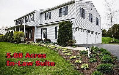 Many updates and possibilities with the 5 bedroom home situated on over 5 acres of land in a country setting. 3 car garage. 1st floor laundry room. New roof has been installed in 2010. A separate in-law suite with a 1 bedroom, 1 full bathroom, full kitchen and dining area.
