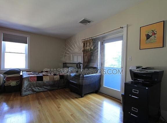 This spacious 1BR/1BA condominium is located in the heart of town center/gas light district, across from the iconic Warren Tavern. The corner living room with wonderful light and recessed bay window - perfect for dining area, features a wood burning fireplace, custom built-ins, dental moldings, and hardwood floors. Tucked off the living space is a well appointed kitchen. A large bedroom with custom closet and space for a home office, is located at the rear of the unit for privacy. Nicely appointed full bath with jacuzzi tub. Amenities include a private deck with Monument views, in-unit W/D, and central air conditioning. Rent includes one assigned parking space directly behind the building. Available 9/1/21.