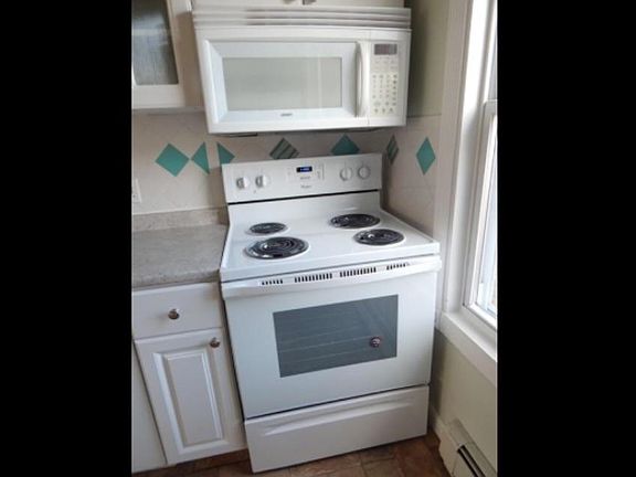 Recently renovated large, sunny, apartment. This is a great location in a walkable neighborhood with a large private yard. This generously sized, open concept 2 bedroom apartment has a huge living room with tongue and groove solid wood ceiling which opens to the eat in kitchen. The kitchen includes a built in microwave and dishwasher and a lot of counter space. This unit has huge closets including a walk in closet, a large private deck, eat in kitchen and laundry hookups in the unit! This beauty is loaded with all the modern amenities as well as the old world charm of wide pine floors (Hardwood, vinyl and tiled floors throughout). Parking for 2-3 cars is provided in your own dedicated driveway. Tenant is responsible for all utilities to the unit and snow removal from stairs and entryway, and deck areas. Come see for yourself...this one won't last! Tenant is responsible for trash, heat, hot water and electric as well as snow removal on the steps. Landlord pays water/sewer and provides plowing services, landscaping, mowing etc. One year lease, first and last month. Non refundable deposit of one month's rent due at signing which will be held as the last months rent deposit.