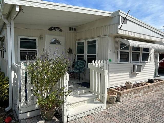 Distinctive 2 Bedroom, 2 Bath home with New Windows, New Wood Plank Vinyl Floors, both Bathrooms remodeled, Open Kitchen with Dining area, Large storage area with Washer/Dryer, Carport and a cozy front porch over looking park with plenty of playful squirrels. Vintage style exterior and updated interior with sensational Florida colors. Located in Historic Braden Castle 55+ active Community with Boat slips for $300 a year, Boat launch and 700 foot fishing pier. Bulkhead Reef, Egmont Reef and 3 mile Reef are only 8 nautical miles away. Community center with Billiard tables and Fitness center, Shuffle board and a well stocked Library. Restaurants and Shopping just minutes away. Lot lease is only $411 a month