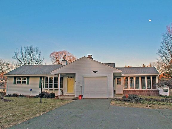 Lovingly maintained, quality built single story home. This cozy and comfortable one owner two bedroom Ranch is a must see! It offers a spacious living room with a fireplace and a bay window. Kitchen with a pass through connecting the dining room. A recently update bathroom with a walk in shower and a stackable washer and dryer on the first floor. Sit, relax and enjoy the spacious sun room that was added more recently with heat, cathedral ceiling, surrounded by knotty pine walls and large windows that take in a nicely landscaped yard, storage shed, stone walls and lots of perennials that will be coming up soon. Large game room in the basement equip with a pool table, knotty pine walls and a wall of built-ins, second bathroom, utility room with cedar closet and a workshop area with an additional washer and dryer. Central AC, generator panel with automatic generator, replacement windows and hardwood floors throughout. Conveniently located on an attractive corner lot in South Deerfield