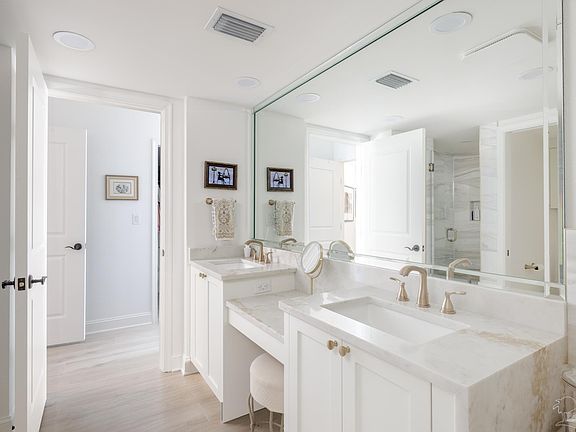From the moment you enter this stunning Portofino condo, you’re surrounded by paradise. Expansive sapphire-blue water views fill every window, wrapping the home in coastal tranquility while complementing the thoughtfully designed interior. This three-bedroom residence in Tower One has been transformed into a timeless, contemporary retreat. Step through the foyer into open living spaces, where the newly remodeled kitchen (2025) flows seamlessly into the dining and living areas. The kitchen features stainless Café appliances—including a range with hood, ice maker, and wine fridge—set against elegant quartz and quartzite surfaces, a custom backsplash, and abundant cabinetry. A walk-in pantry provides added storage. Pocket doors off the kitchen lead to one of three bedrooms, complete with terrace views and convenient access to a full bath—ideal for guests. The living room showcases a built-in fireplace and entertainment center, all while offering sweeping views of both the Gulf of Mexico and Santa Rosa Sound. Sliding floor to ceiling glass doors that open to an expansive corner balcony. Out here, two spacious sitting areas and a built-in outdoor grill create the perfect setting for year-round entertaining. The primary suite offers direct terrace access, a walk-in closet, and a beautifully updated bath with granite waterfall counters and marble accents. A second bedroom opens to its own terrace, featuring twin closets and access to a third full bath. A laundry room completes the interior. Beyond the residence itself, enjoy the exclusive Portofino lifestyle—resort pools, on-site dining, and the beach just steps away. This is a rare opportunity to own a sophisticated coastal retreat with unmatched views and luxurious finishes.