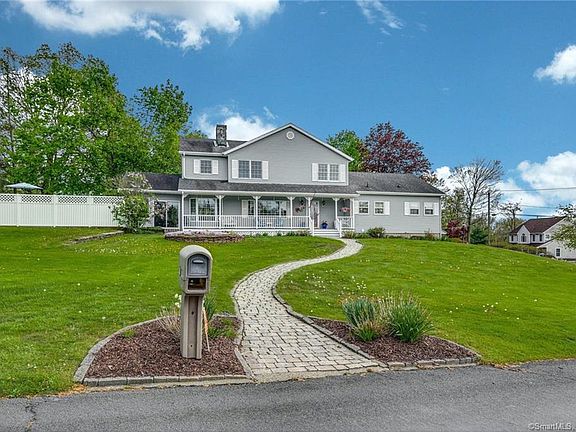 Nice views and sunsets can be enjoyed from the large front porch of this lovingly maintained and updated 4 bedroom Colonial with large 1st floor main bedroom suite. Remodeled kitchen features large granite island with breakfast bar seating for six. 3 additional bedrooms and updated hall bath on 2nd level. All bedrooms feature closet systems. Crown moldings throughout. Three season porch looks out at fenced private yard and inground pool. Gas fireplace in living room. Wood burning fireplace in lower level. Spacious home with great versatility. Looking for a home office or in-law suite? Direct outside entry into lower level office space complete with half bath. 2 car tandem garage currently used as workshop and 1 car garage. 2 story shed with electric. Stonewalls and perennial gardens. 2 driveways. New water pump and oil tank. Custom addition by these owners in 2002.