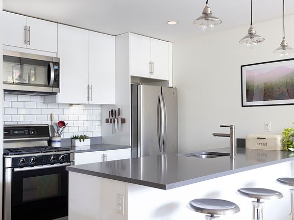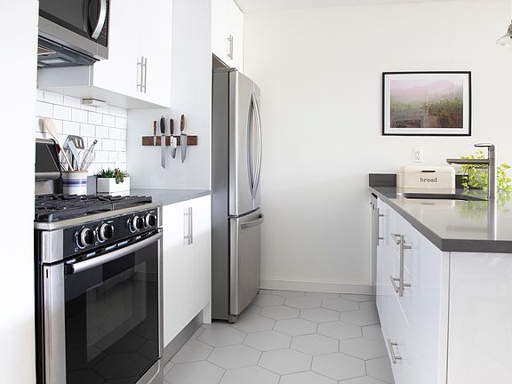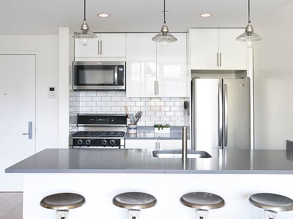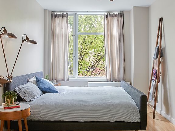 Welcome to Unit 203, located at 1 Powers Street in Williamsburg, Brooklyn. This 2BD/2BA south-facing beauty with abundant natural light throughout features private balcony and separate storage space in the basement. The large primary bedroom fits a king-sized bed (pictured) and includes an ensuite bathroom with oversized Zuma bathtub and honed marble floors. The second bedroom has custom floor-to-ceiling cabinetry, making the perfect home office or second bedroom with plentiful storage. The second full bathroom is strategically-placed in the hallway. Kitchen appliances are top of the line, including Bosch gas oven/stove, Bosch dishwasher, Kitchenaid microwave, LG refrigerator. Washer and dryer also included in-unit. This unit is located on the southern side of the building, with windows and balcony facing the tree-lined and quiet Powers Street. The building, wired with incredibly fast Verizon Fios internet, is located on the corner of Powers St and Union Ave, with 31 units total across six stories accessed by an elevator. This unit is located on the eastern side of the building on Powers St. The exceptionally large rooftop with stunning Manhattan views and gym in the basement are communal spaces for all to enjoy. There is also a bike room upon space availability. Small pets may be allowed on a case by case basis. The building sits seconds from countless restaurants, bars, grocery stores, and more. Reach out to schedule a time to tour the apartment in-person.