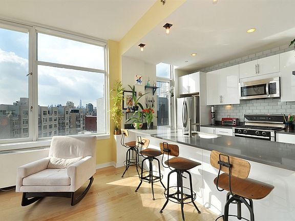 ***Luxury Penthouse Living at its Best... Inside and Out*** This corner 1346 SF 2 bed, 2 bath Boasts NYC Skyline Views, South and Western Exposures, 1 deeded parking spot, storage and a 296 SF South Facing Terrace. Owner customized with maple wood flooring, custom walk in closet, California closets and solar shades. The interior is designed to maximize living with large chefs kitchen opening up to a sprawling living/dining area. This Lofty Gem shines all day long with high ceilings, oversized windows letting in tons of natural light. Walk right off your living room and strike up the BBQ for those long summer days ahead! Other Features include: stainless steel appliances, white lacquer cabinets, Concrete CaesarStone countertops, Bathrooms include polished Mayorca marble wainscot on walls, honed Bottinico Fiorito marble floors, polished Bottinco Fiorito marble countertops, sliced beech veneer vanity, Kohler fixtures, and Zuma bathtub. Master bathroom includes carbonized quarter sawn bamboo vanities, polished inca stone countertops, running bond porcelain wainscot on walls, and azul argento stone floors. Building Features: gym, elevator and common roof deck. Located right on the corner of Bustling Union Ave and Tree lined Powers Street puts you in the best of both worlds. Steps from the Lorimer L stop, local restaurants, cafes, shops and transportation. 1st OH Sunday 3-9-14. Time TBD. Parking Included in Sales Price! Year 3 of 25 Year Tax Abatement