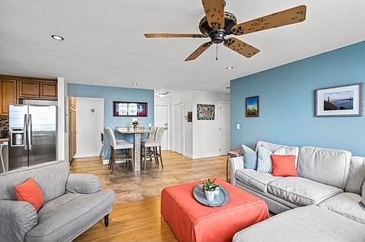 Beautifully renovated Top Floor unit w/open floor plan & far reaching views is located in E Bostons desirable & convenient Eagle Hill. Easy access to Mass Pike & 93 N & S, quick walk to E Boston Greenway w/community garden & library, restaurants, DD, appx 1 mi to airport T & 1.8 mi to beach. Enter a bright, spacious open living area w/dramatic windows & unobstructed views. Inviting, large living room w/striking bamboo flrs opens to a dining area & fabulous, renovated kitchen ~ great for todays style of living. Kitchen showcases quality/soft close cabinetry, SS appls, granite, backsplash & huge pantry. Tucked away is the important home office. 2 fabulous, spacious bedrms w/bamboo flrs, large windows allowing warm natural light & custom California closets. Beautifully renovated bthrm w/tiled tub & shower, glass dr & updated vanity. Enjoy an assigned Parking Space, In-Unit W/D & generous closets. Updates: Heating, Water Heater, Appliances, A/C Condenser, Roof & more.