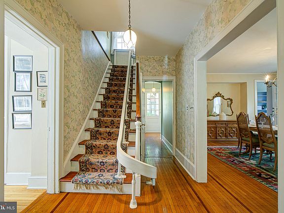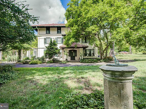 Welcome to Rose Hedge! This signature Rose Valley home was originally built in 1840 and was re-designed in 1902 in Italianate style by Walter Price, brother of William Price, a well-known American architect who spear-headed the Rose Valley Arts and Crafts movement. It is registered on the National Register of Historic Places (though no approvals are needed for renovations) and boasts unique architectural details as well as convenient modern updates. Fittingly, you will be warmly welcomed by a glorious rose hedge as you approach this gracious home off Prices Lane. Set on three quarters of an acre, you will appreciate the large open lawn on your left as you walk through the portico and approach the large, partially covered brick patio, pergola, and welcoming front door, which is flanked by a pair of stained-glass windows designed for Rose Hedge by the renown Nicola D’Ascenzo, a stunning Mahogany ceiling and new Terracotta roof. Upon entering the foyer, you will find the formal living room on your left, which has remarkable thick maple flooring, custom built-ins, and an abundance of natural sunlight from the huge twelve over twelve pane windows. The unsurpassed attention to detail found in this home is exemplified by the magnificent wood burning fireplace, surrounded by a remarkable 1795 Pennsylvania Gouge carved mantel. Just across the foyer, the spacious formal dining room boasts an artistically designed white pine floor, custom built-ins and an eye-catching archway with windows and bench seating. Just off the dining room, the walk-through pantry offers ample storage, laundry, access to the back staircase and leads to the modern kitchen full of attractive cherry cabinetry, a completely charming original cabinet that has been thoughtfully integrated, Mercer tile backsplash, center island and cheerful breakfast area with a large bay window overlooking the absolutely fabulous walled brick courtyard. This enchanting outdoor oasis is the perfect setting for gracious outdoor entertaining and features lush, raised gardens and a tiered stone fountain which demands attention as it sits majestically atop the stately flagstone terrace. The first floor is complete with an adorable and perfectly tucked away powder room with William Morris wall covering, and a cozy den with another large bay window, and convenient outdoor access to the courtyard as well as the portico, allowing for seamless flow between indoor and outdoor living. The second floor has two well-appointed bedrooms and a storybook, walk-out balcony overlooking the front lawn and canopy of mature trees. The first bedroom was the original main bedroom, and mirrors the lovely living room below with 5 large windows, wide window seat, as well as three closets. The Main bedroom has direct access to the hall bath through a spacious dressing room outfitted with a multitude of built-in shelving and hanging space, and features the visually pleasing archway and window bench which is also found in the dining room below. The third floor boasts two additional well-sized bedrooms, one of which is en-suite also with hall access. Surrounded by natural beauty, this warm and inviting home's location in the heart of Rose Valley (across from Rose Valley Museum at Thunderbird Lodge) offers access to endless walking trails and is easily accessible to the RV Pool and Tennis Club, Moylan/RV train station, the town of Media and offers easy access to i95, 476 and the Philadelphia Airport. The location in award winning Wallingford Swarthmore School District, incredible craftsmanship and noteworthy design throughout coupled with the many modern updates makes Rose Hedge a truly exceptional home not to be missed.