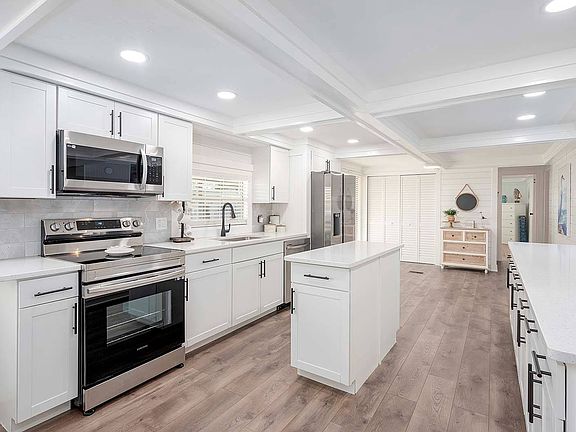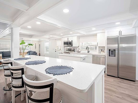 Are you ready for "Wow!?" This impressive 1344 sqft home comes with 2 bedrooms, has been remodeled and is in great condition with all NEWER kitchen stainless steel appliances including oven/range, fridge, dishwasher and microwave. Kitchen also boosts an adorable and spacious kitchen Island that also overlooks the living room and dining room area. Additional appliances include washer & dryer set. Don't miss out in making this home your forever home! The OPEN CONCEPT home offers lots of good use of space with gorgeous NEW vinyl flooring in every room giving home a modern look. Wall to wall windows allow a beautiful Florida sunrise to welcome the day in every room you walk in. Master and guest bedrooms have lots of space, with lots of windows to brighten your day at any time of day as well as the convenience of an En-suite bathrooms of which has double sinks and a lot of mirrors. Other great features include ceiling fans, built in cabinets and lots of recessed lighting in all the ceilings. The exterior siding is made of sturdy vinyl and the BEST feature yet is there is an oversized screened in porch for those who enjoy and love the warm Florida climate at any time of day with some shade or to simply enjoy your coffee while watching the sunrise. You will also love the extra outdoor space this home comes with as well as the beautiful landscape view. Additional space and storage come with its very accommodating shed as well as plenty of parking for your vehicle's needs and a carport for TWO. With a NEWER A/C unit, do not miss out on this amazing opportunity! Jamaica Bay is a gated community of manufactured homes in south Fort Myers designed for age-restricted residents who want to enjoy a fun and active lifestyle. Amenities include: 24-hour staffed gatehouse, (3) clubhouses with verandas, poker room, craft room, (2) heated pools, whirlpool spa, fitness center, locker room with saunas, (12) shuffleboard courts, (3) bocce ball courts, (4) tennis courts, (2) pickle-ball courts, putting green, (2) horseshoe pits, (4) billiard tables, pub tables, library with wireless internet, (3) stocked lakes, BBQ & picnic areas, and planned community activities. Do not miss out on this stunning Florida home - Come play at Jamaica Bay!