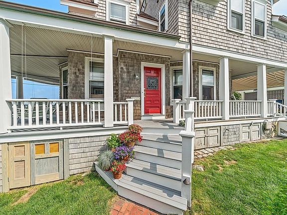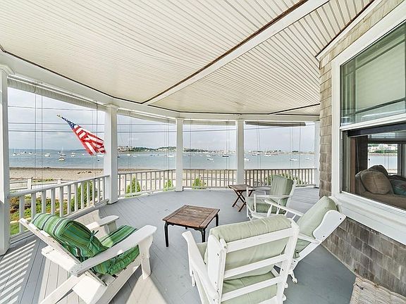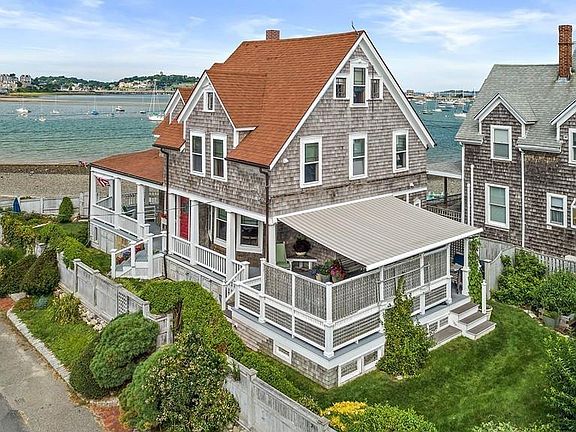 Moor your boat in front of this classic shingled direct bay front home. Beautifully sited overlooking Hull Bay with scenic views of the Boston skyline and ever changing sunsets. A rare deeded direct bay front parcel is included and offers endless possibilities for a dock, float or boat mooring. Both front and rear covered porches offer a relaxing oasis. The rear yard, lawn area, formal gardens and stone walls are all fenced in to provide great privacy when outdoors. An open floor plan, good ceiling height, detailed custom moldings, wainscoting and gleaming wood floors. Front living room has a wood burning fireplace and is open to the dining room, new custom teak and holly full bath and mud room with custom cabinetry. Kitchen has a barrel ceiling, SS app, marble counters & cabinetry that is built like a fine sail boat! 2nd floor features 3 bedrooms & 2 new full custom tile luxury baths. Large finished room on the third floor with coffered ceilings and custom storage. A RARE OFFERING!