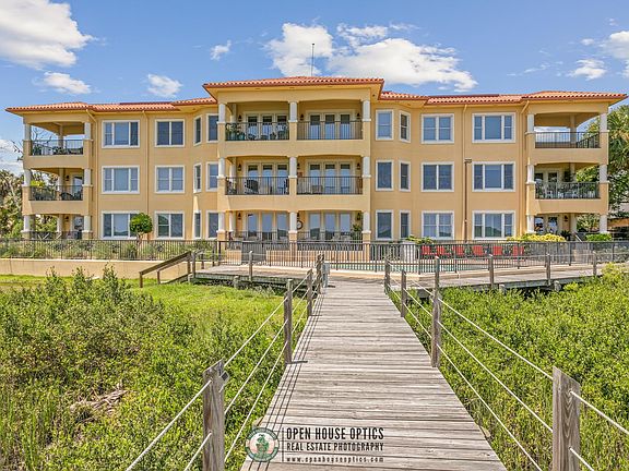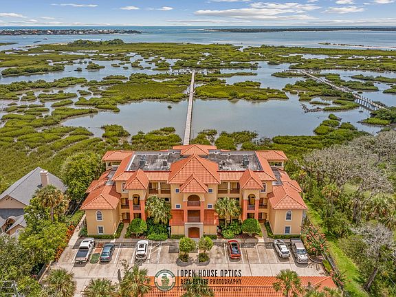 This elegant 3 bedroom, 3 bathroom condo is located in a prime location within walking distance of beautiful downtown Saint Augustine and a 5 minute drive to Vilano Beach. One of only 8 units with stunning panoramic views of the Intercoastal waterway, as well as the lighthouse, Bridge of Lions, and St. Augustine Inlet. Community dock with private boat slip allows easy access to the Intercoastal Waterway and Atlantic Ocean. Cook your catch in your newly renovated gourmet kitchen featuring quartzite kitchen countertops, custom cabinetry, Subzero refrigerator, Signature dishwasher, Wolf range, oven, & microwave. Greet the morning from bed in your master bedroom overlooking the sun rising over the Inlet. After enjoying breakfast on your beautiful private balcony, take a quick swim in the community pool or a run/walk through beautiful downtown St. Augustine. Hardwood flooring and grass cloth wallpaper add warmth and class. This is easily one of the most desired locations in Saint Augustine! Private Boat Slip and Community Pool